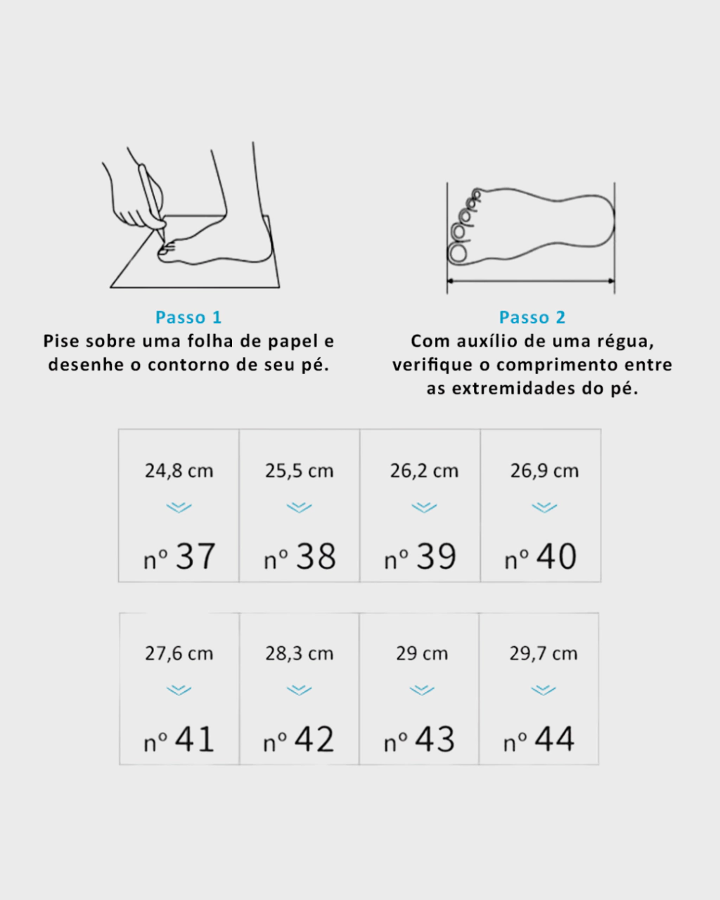 Palmilha: Palmilha anatômica em PU gel com memória que acompanha os movimentos dos pés ao caminhar e não se deforma com o uso.